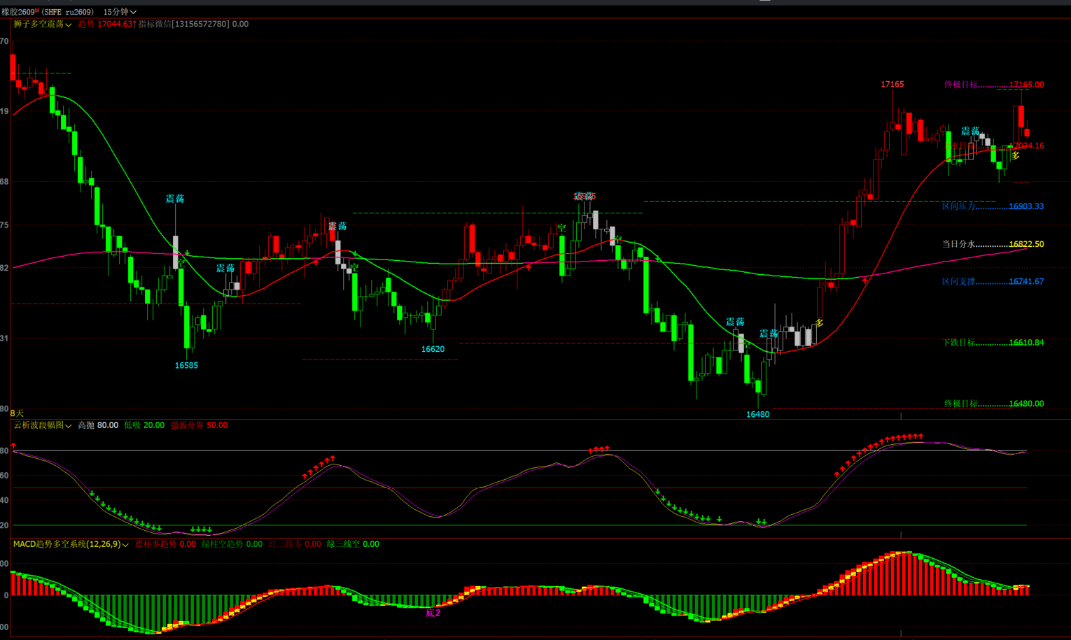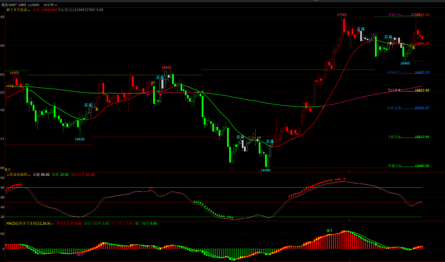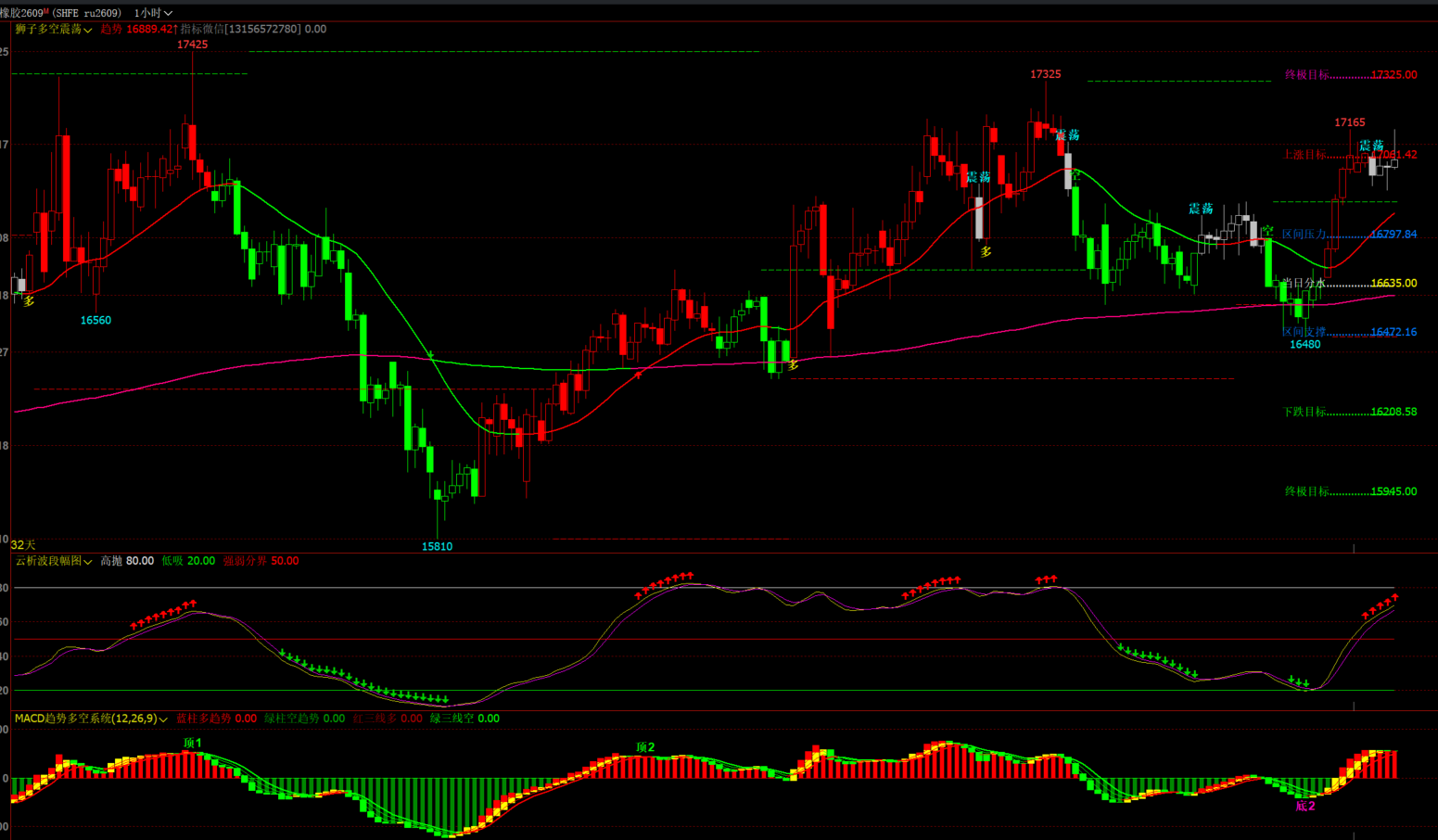 1、指标名称:狮子多空震荡主图+云析波段幅图+macd趋势多空系统幅图