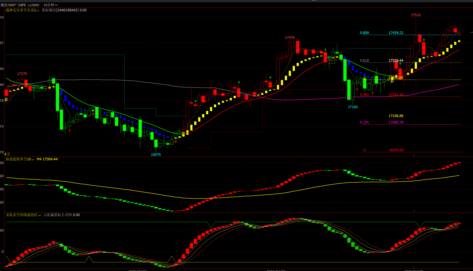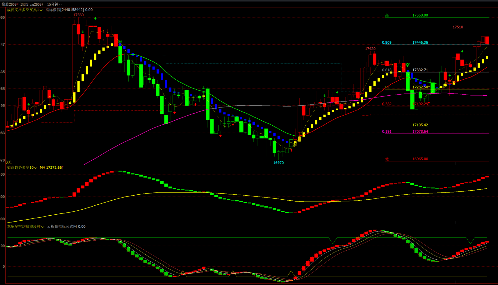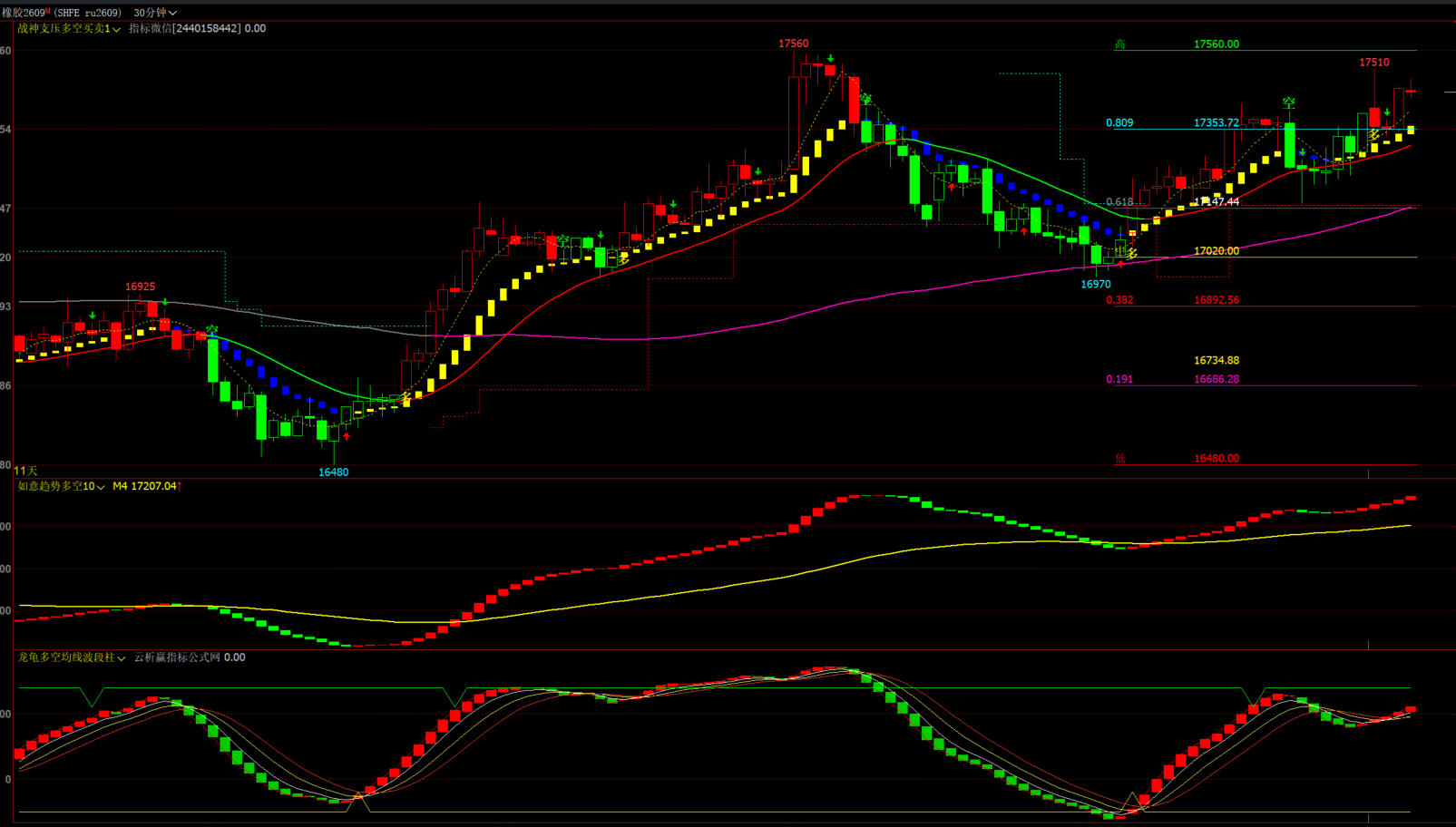 一共分为三个指标:分别是战神支压多空买卖主图,如意趋势多空幅图,龙龟多空均线波段柱幅图,主图+幅图都无未来函数。下面分别介绍一下指标的信号功能。