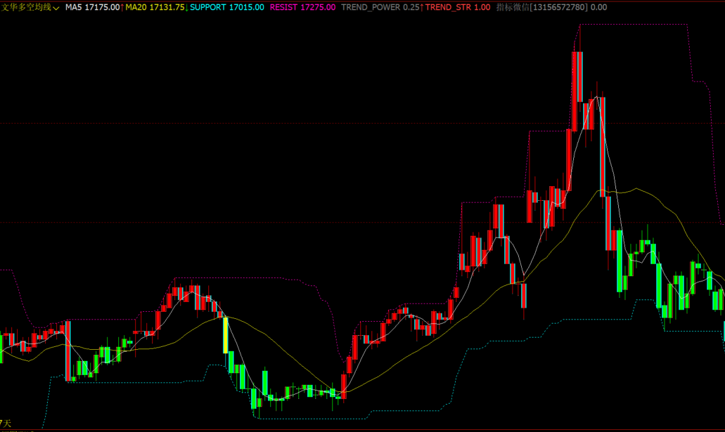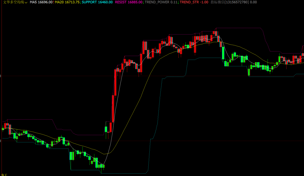波段多空指标-云析赢指标公式网-期货指标公式网 VIP指标 文华MA5+MA20多空K线指标-支撑压力线+趋势强度百分比源码 https://qihuo8899.com/270.html/
