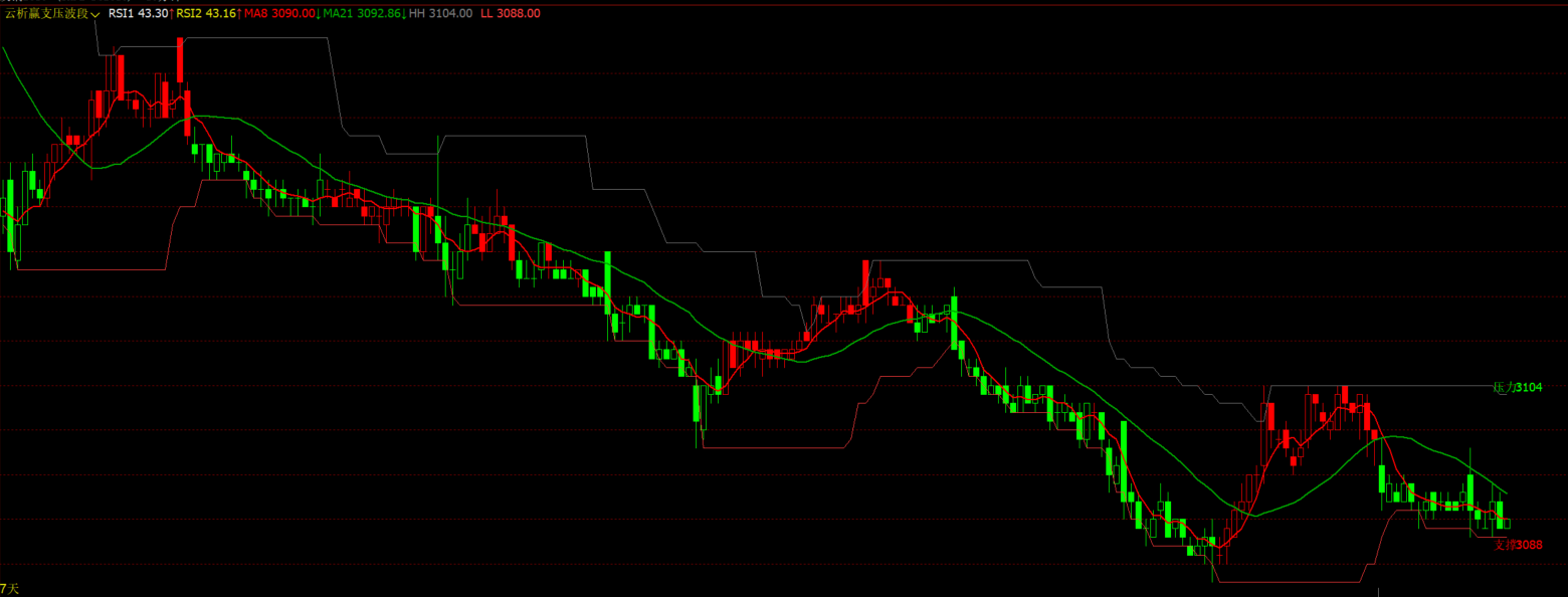 3、未来函数:压力 支撑文字标注位置,用到未来函数