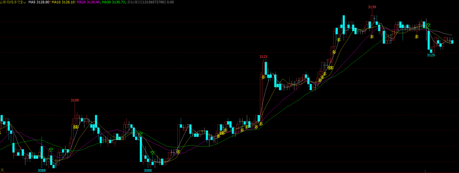 公式核心逻辑:以 5/10/20/30 日均线判断整体趋势方向,叠加 MACD、KDJ、MTM 三大指标同步共振,严格筛选出趋势明确的交易信号,拒绝虚假提示。