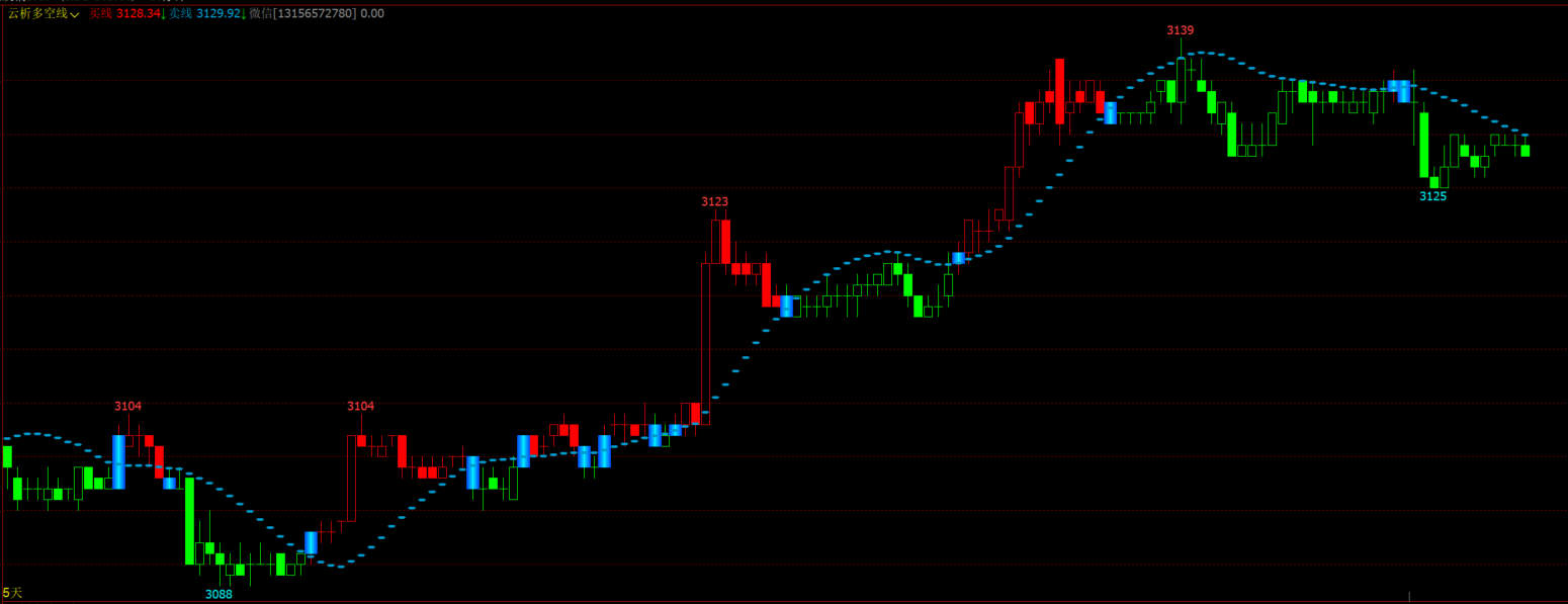 当买线上穿卖线时,视为短期转强信号。当卖线上穿买线时,视为短期转弱信号。
