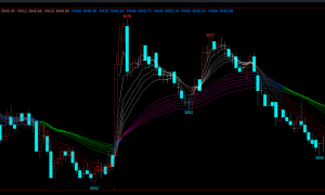 文华期货wh6顾比均线指标公式源码: MA3:=EMA(C,3),COLORC08080; MA5:EMA(C,5),COLORC08080; MA8:EMA(C,8),COLOR...