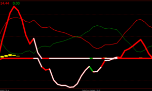 DIF:=EMA(CLOSE,12)-EMA(CLOSE,26),COLORFF80FF,LINETHICK1; DEA:EMA(DIF,9),COLORRED,LINETHICK...
